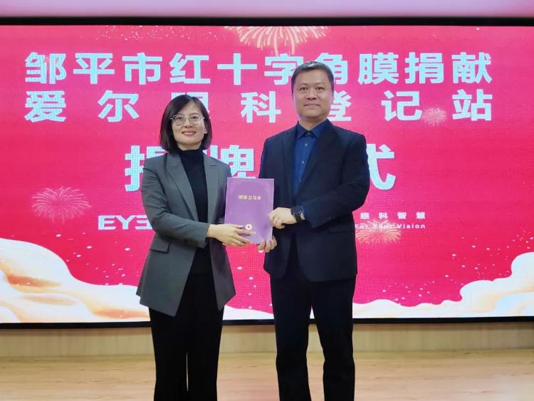 “鄒平市紅十字角膜捐獻(xiàn)愛(ài)爾眼科登記站”在鄒平愛(ài)爾眼科醫(yī)院正式揭牌